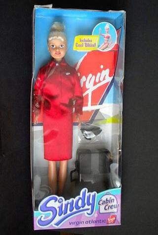 Her next official flight would not be until 1991 when Hasbro introduced an air hostess outfit as part of their career 'options' series They updated it in 1993 before dropping the range Over ten years later in 2002 Vivid Imaginations launched a Sindy in a replica of the iconic red Virgin Atlantic uniform She was carefully designed and developed to ensure her uniform, hair and appearance emanated