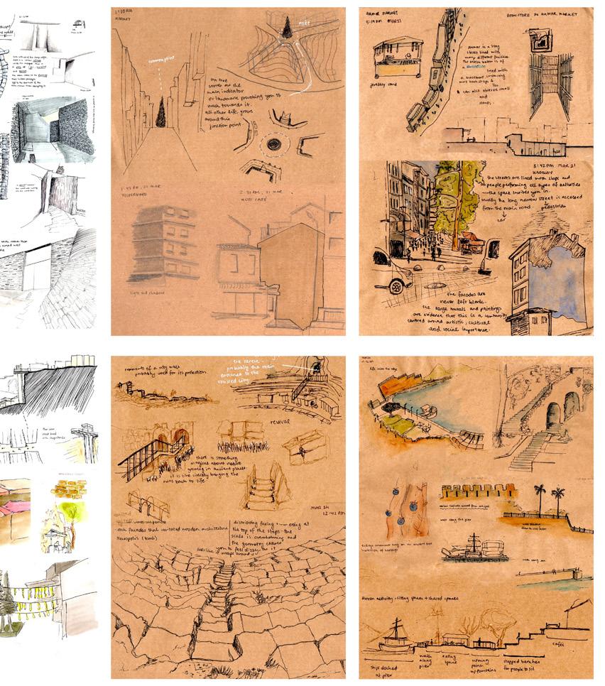 This project explored themes of seasonality and how to design for time-based experiences, focusing on shadows and leaf litter as subtle markers that reveal shifts in topography, inviting us to pause and notice the ground more. It invites us to slow time around us by being in the present moment. This entire semester, work was done by hand only, a challenge that rekindled my love for sketching and helped me refine my own approach to it.