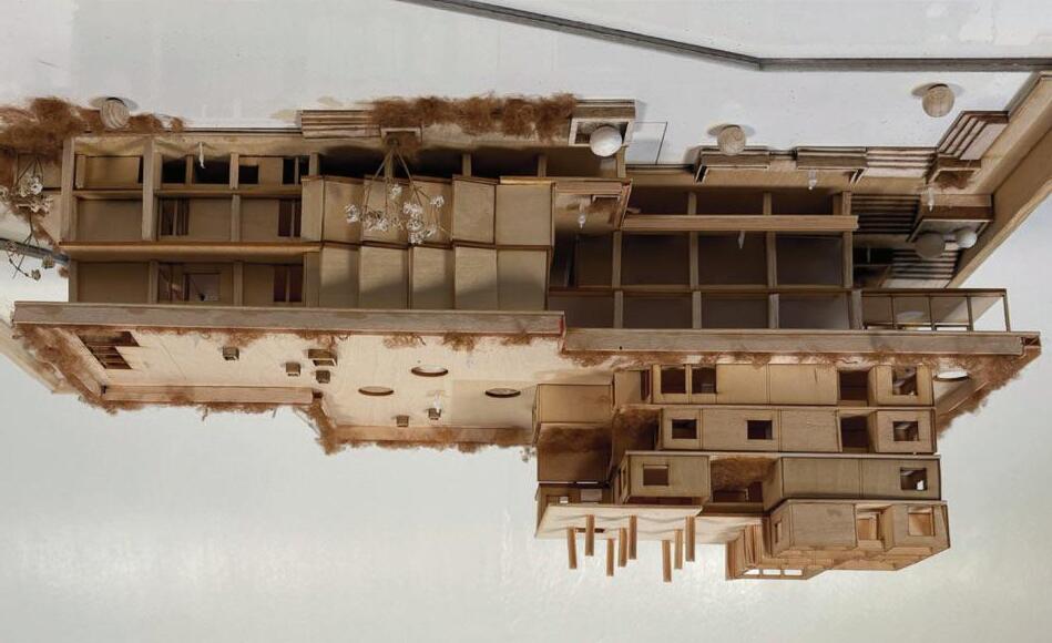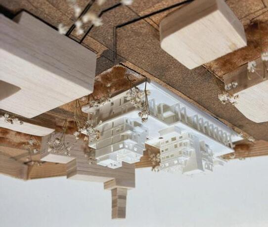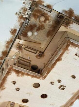 A partial physical model of the building was developed to illustrate the scale of the spaces and the relationship between exterior and interior zones, transitioning from public to private. It also highlights in detail, how public spaces are integrated with the built form and its spatial organisation.
