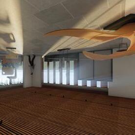 - Far from static, this civic hub embodies a dynamic character, with spaces that expand or contract as required.
