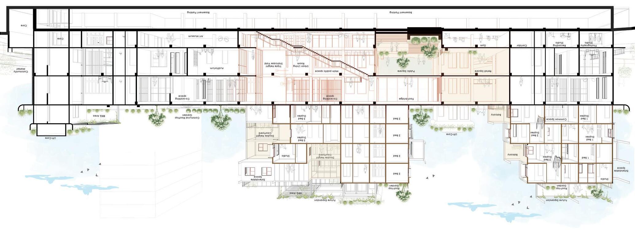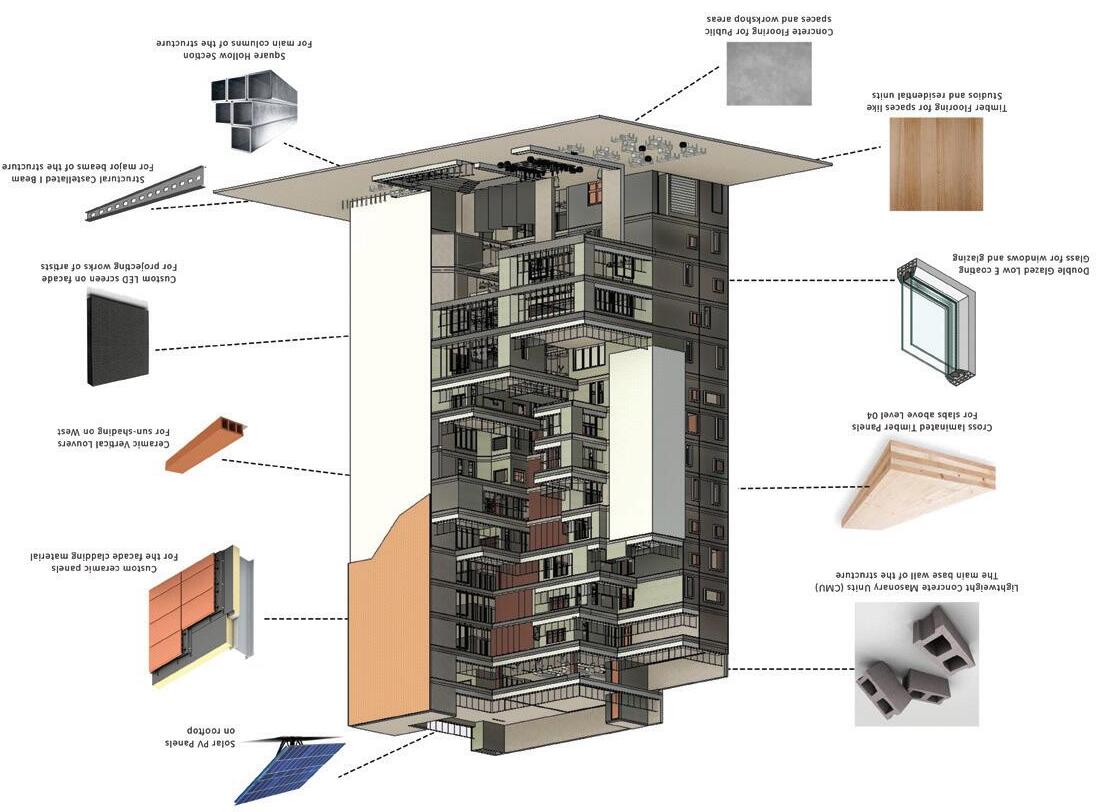 - The residential units are designed for flexibility, allowing adaptable layouts and materials to accommodate changing user needs.