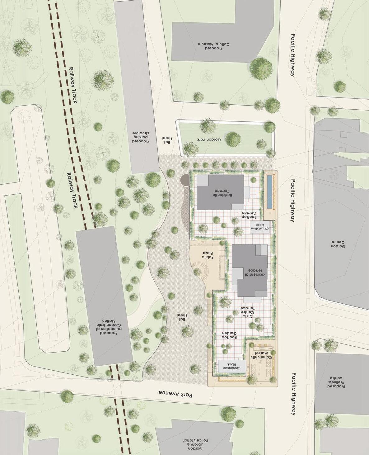 The Concept Master Plan prioritises the health and wellbeing of the community. It envisions a space that is welcoming, inclusiv e, and well-connected, emphasizing green areas and a lifestyle centered on wellness. Gordon will transform into a hub of improved wellbeing, with a focus on restoring natural ecosystems, fostering commu nity connections, and providing access to diverse opportunities.