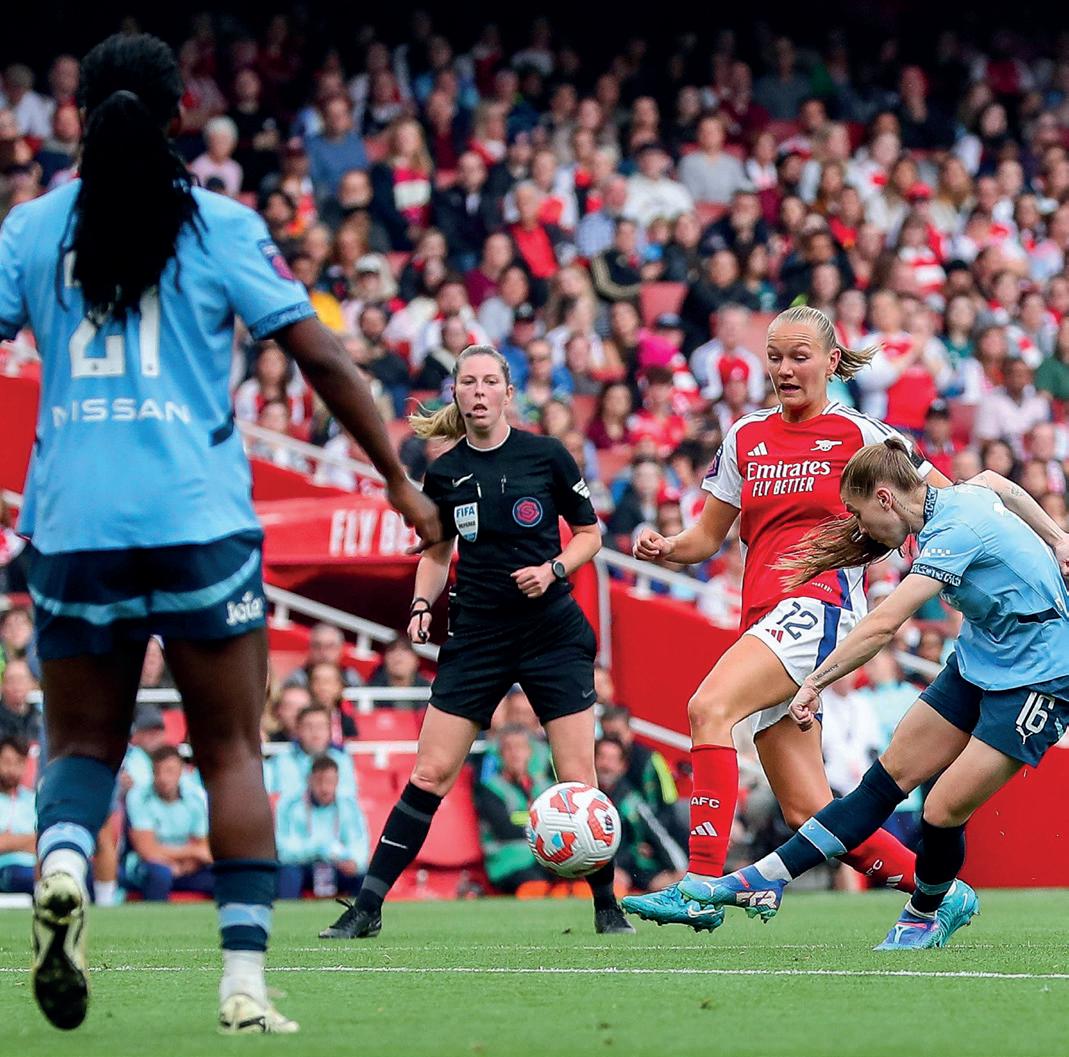 It seems a long time ago now, but Arsenal were the very first visitors to Leigh Sports Village in a WSL setting, in September 2019. The Gunners arrived as defending champions after winning all but two of their 20 WSL games in 2018/19, but United showed no signs of intimidation and fought bravely until conceding a scrappy 89th-minute winner, scored by Danielle van de Donk (right). The level of celebration, Reds boss Casey Stoney remarked afterwards, showed just how much Arsenal “knew they were in for a game”. Meetings between us over the years since have continued to provide plenty of drama (as we recall from p30), so could we be set for another thriller today?