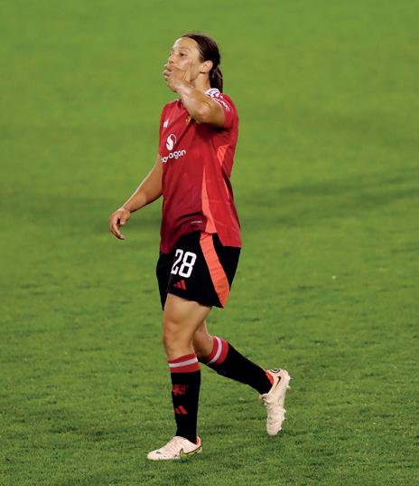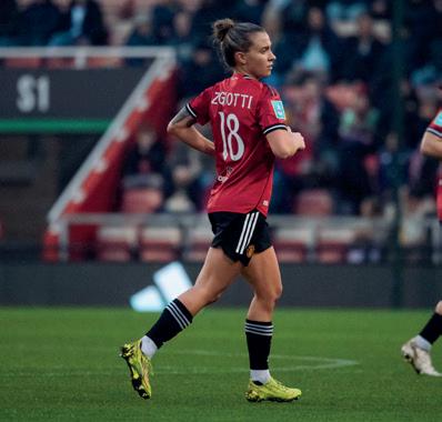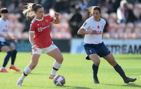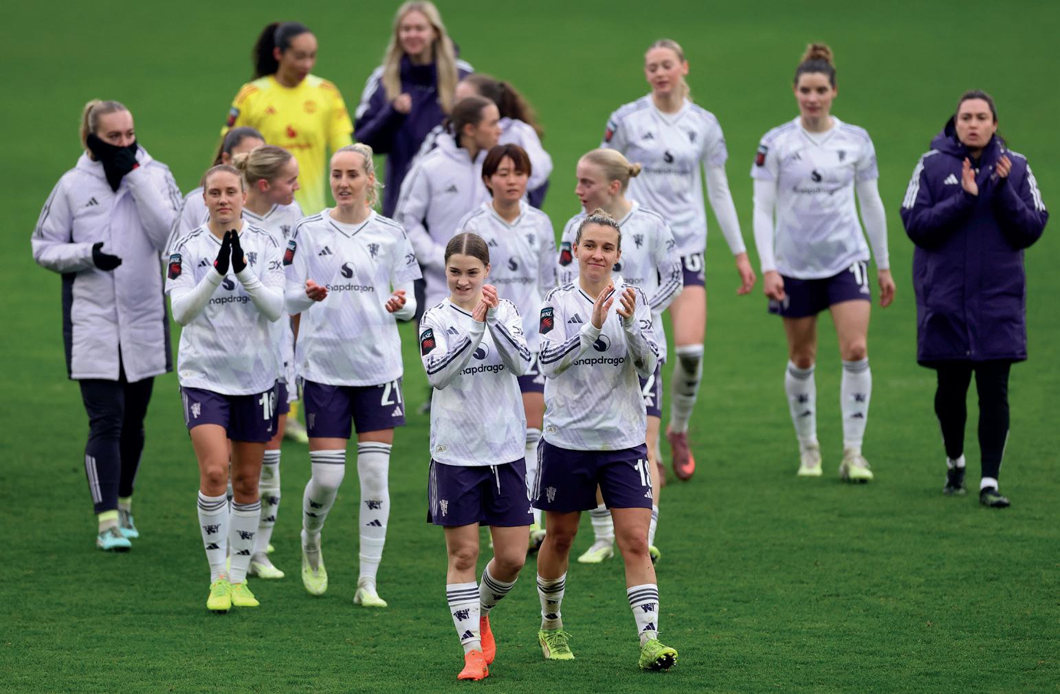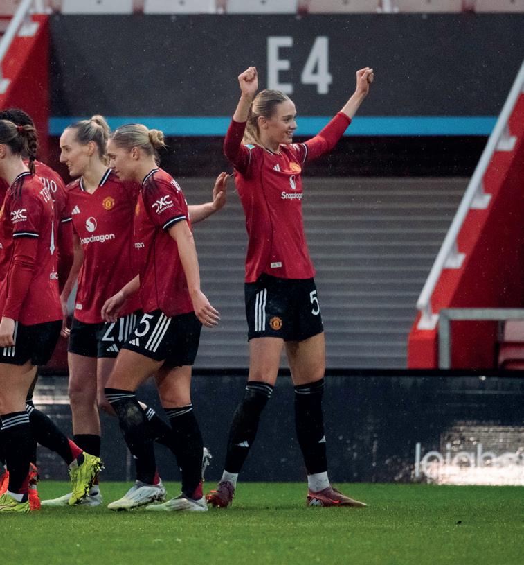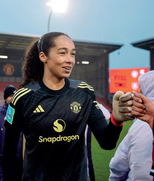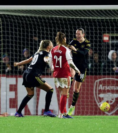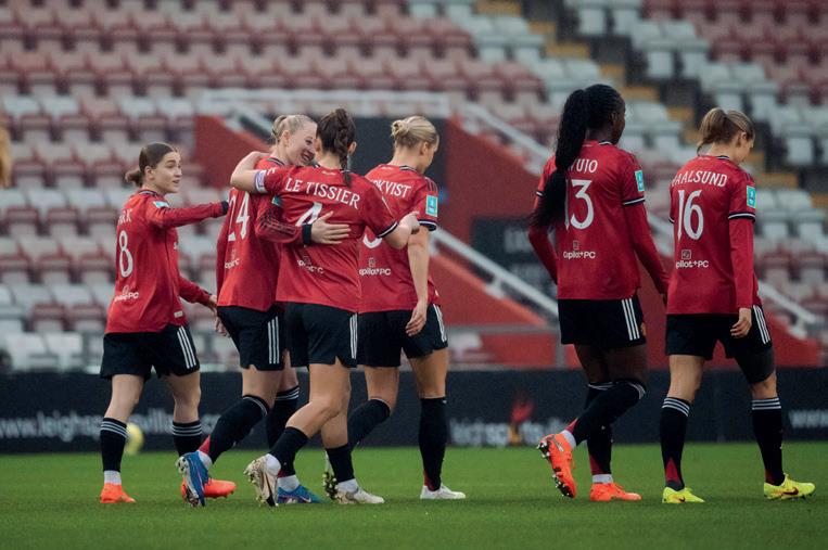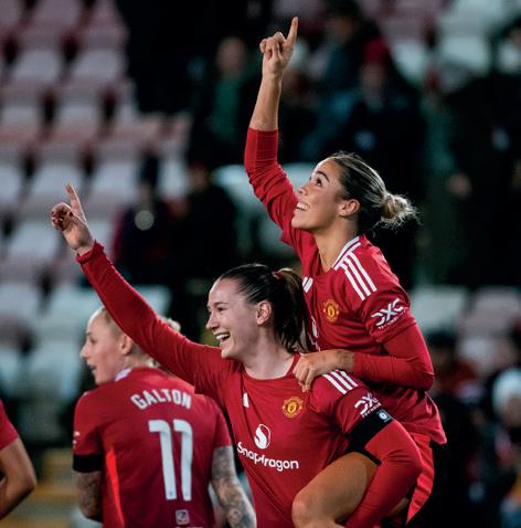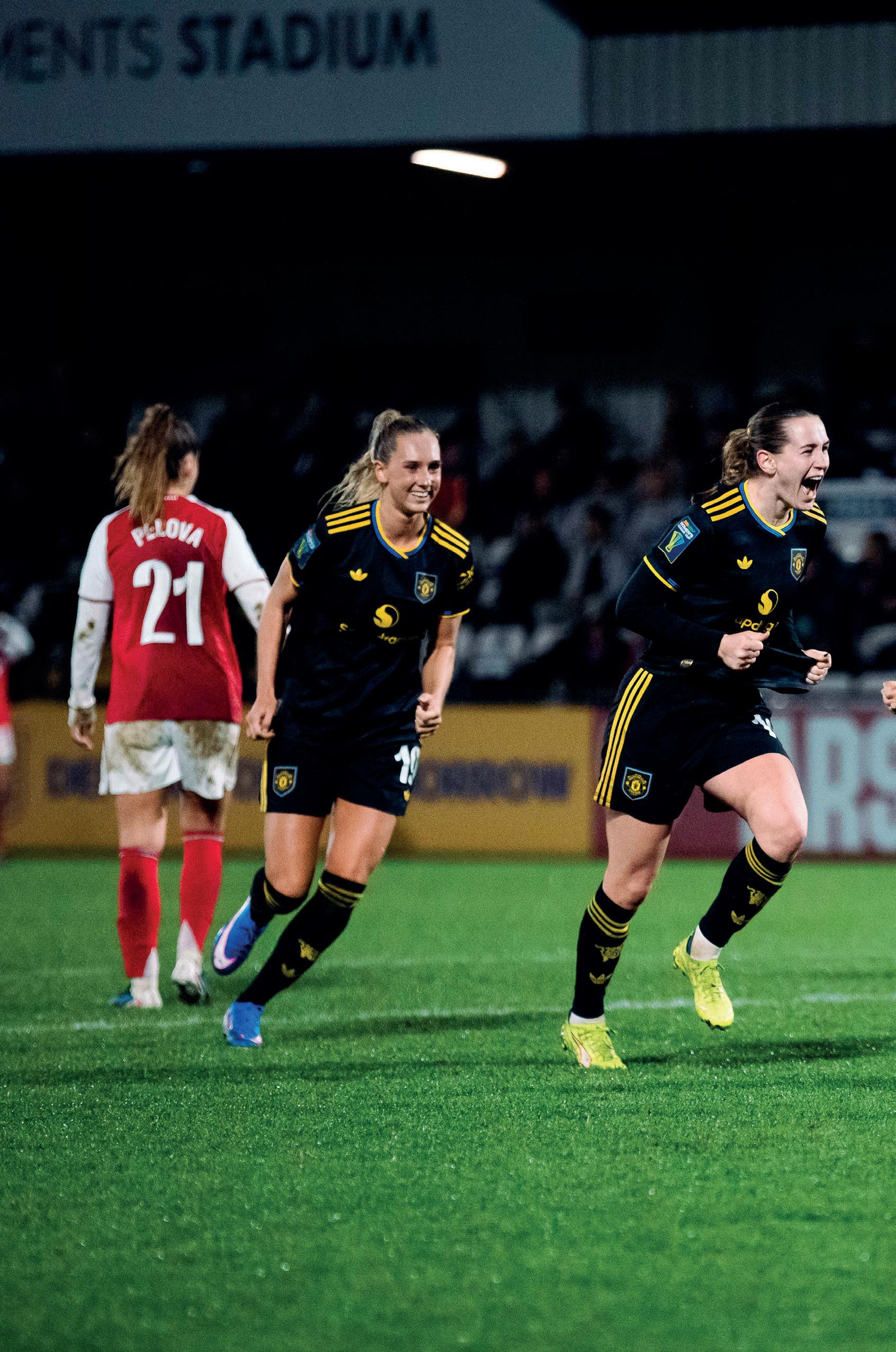 different scorers, including a first United goal for winter signing Lea Schuller, and a debut strike for young forward Layla Drury, who at 16 became our youngest-ever senior player (turn to p14 for more on that). The win set up a tricky fifth-round tie against Chelsea, in a re-run of last year’s final which the Blues won. Chelsea will also be our opposition in March’s Subway Women’s League Cup final, after we edged past Arsenal in the semis via an Elisabeth Terland goal. What an occasion it was in Borehamwood 11 nights ago...