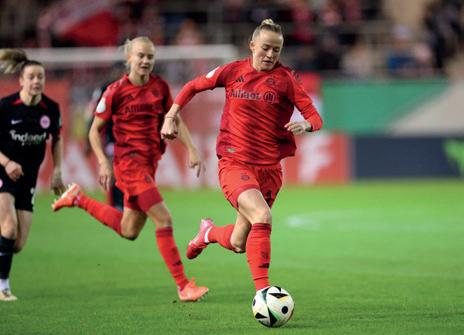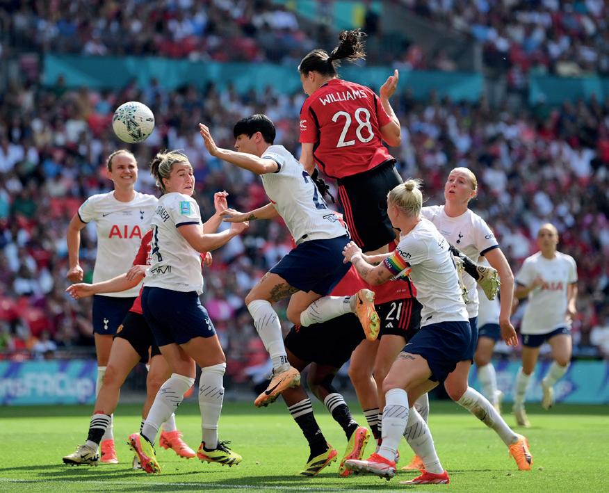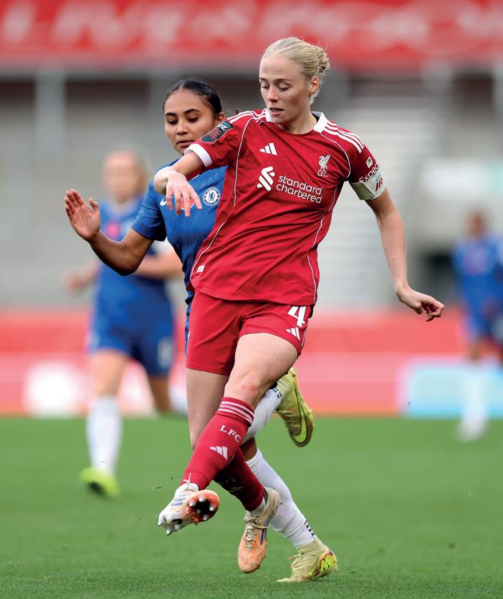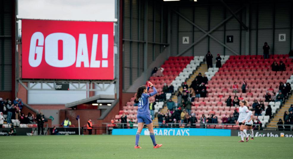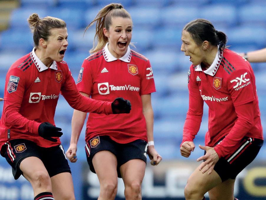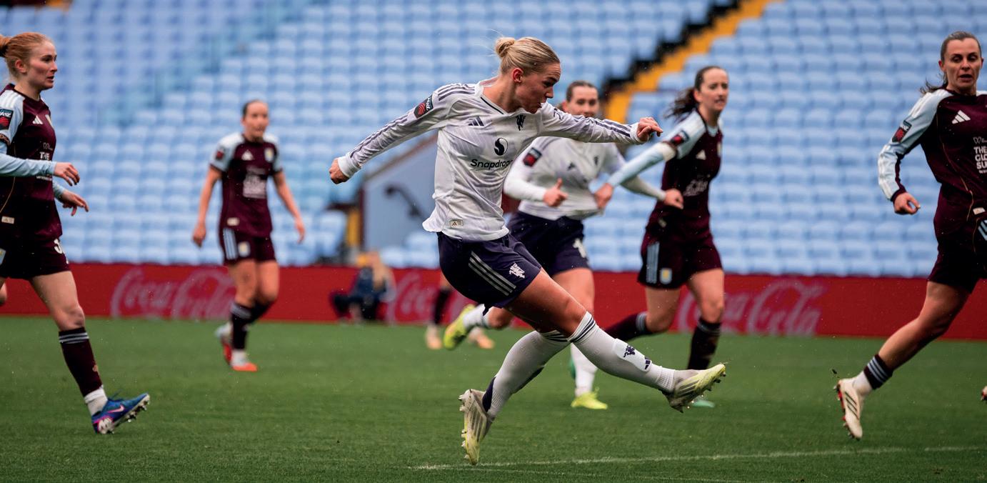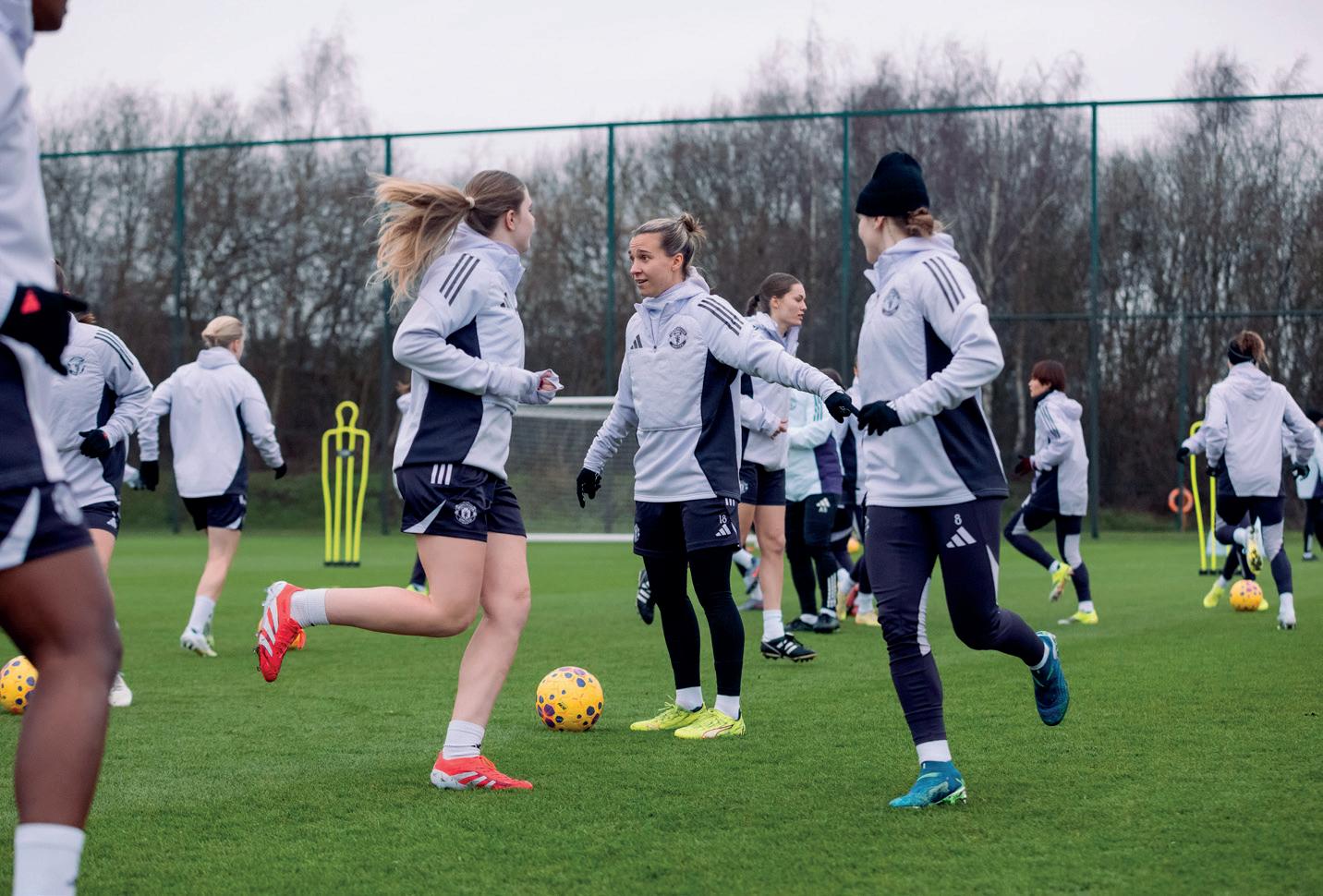 different scorers, including a first United goal for winter signing Lea Schuller, and a debut strike for young forward Layla Drury, who at 16 became our youngest-ever senior player (turn to p14 for more on that). The win set up a tricky fifth-round tie against Chelsea, in a re-run of last year’s final which the Blues won. Chelsea will also be our opposition in March’s Subway Women’s League Cup final, after we edged past Arsenal in the semis via an Elisabeth Terland goal. What an occasion it was in Borehamwood 11 nights ago...