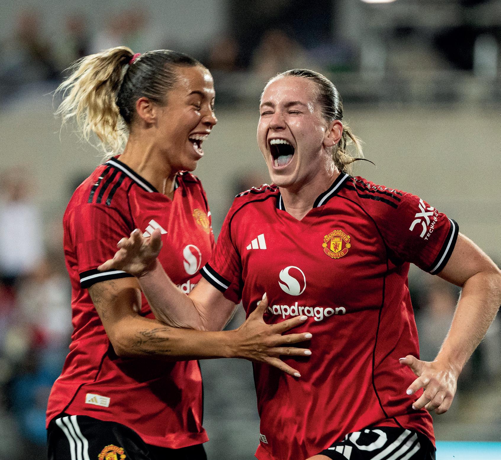 Since our last match programme – for May’s Old Trafford game v City – there’s been a bit of movement in our all-time lists (see below). Leah Galton (left) is now third for appearances, overtaking Katie Zelem, while Melvine Malard is just one game away from catching Kirsty Smith on 58 appearances. When it comes to putting the ball in the back of the net, Elisabeth Terland is the big mover, with her four recent UWCL strikes seeing her race up to joint-ninth in our all-time list, with 16 goals from 29 games – an identical record to Mollie Green (left).
