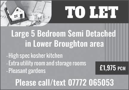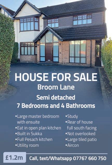 PESACH. 6 bedrooms, 5 bathrooms and large garden. Minutes away from all the local shops, shuls and transport. Please contact 07738208195 ◄