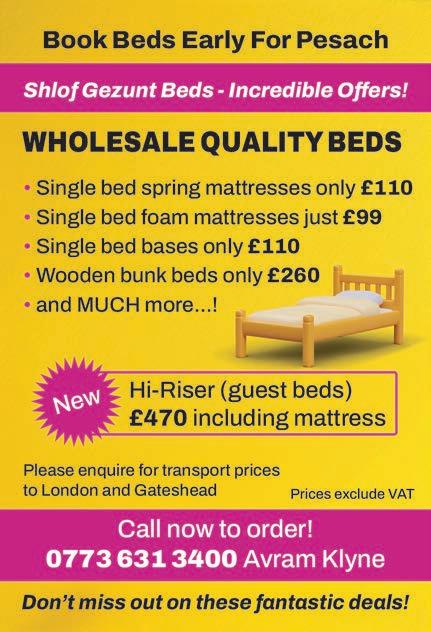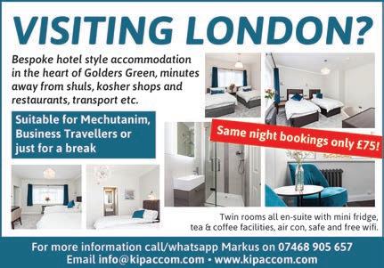 Mechutonim, Chosson & Kalloh, or a Holiday. Call/text 07772 779756 w ww.bishopslodges.com ◄