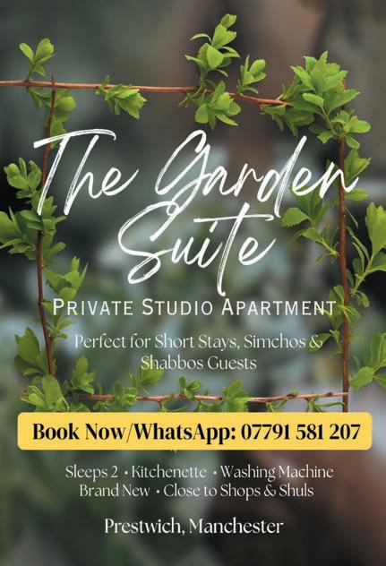 THE HEREFORD SUITEBEAUTIFUL SELF CONTAINED CHASSAN / KALLAH/ GRANDPARENTS or Guest Suite available in Prestwich, with kitchenette etc. Max 2 Occupants. Excellent value. 2 nights minimum. For details and photos call 798 0073 / 07874835276. ◄