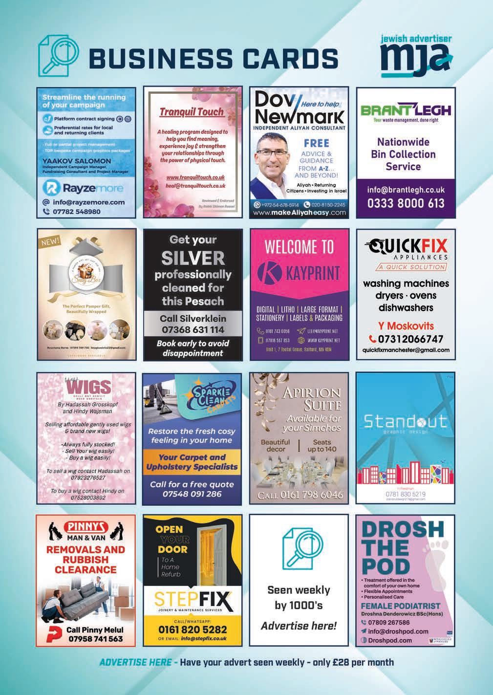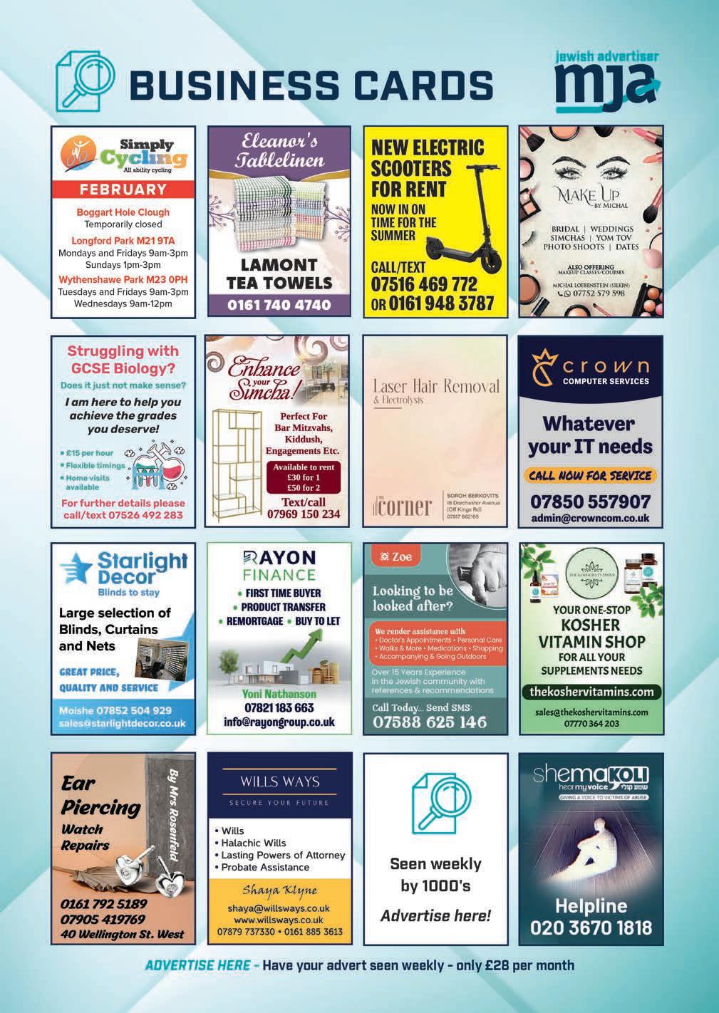 SIMCHA ERRANDS. Making a simcha? Don’t have a car? Lifts available evenings and weekends, 0161 795 7068 / 07434 519316 ◄