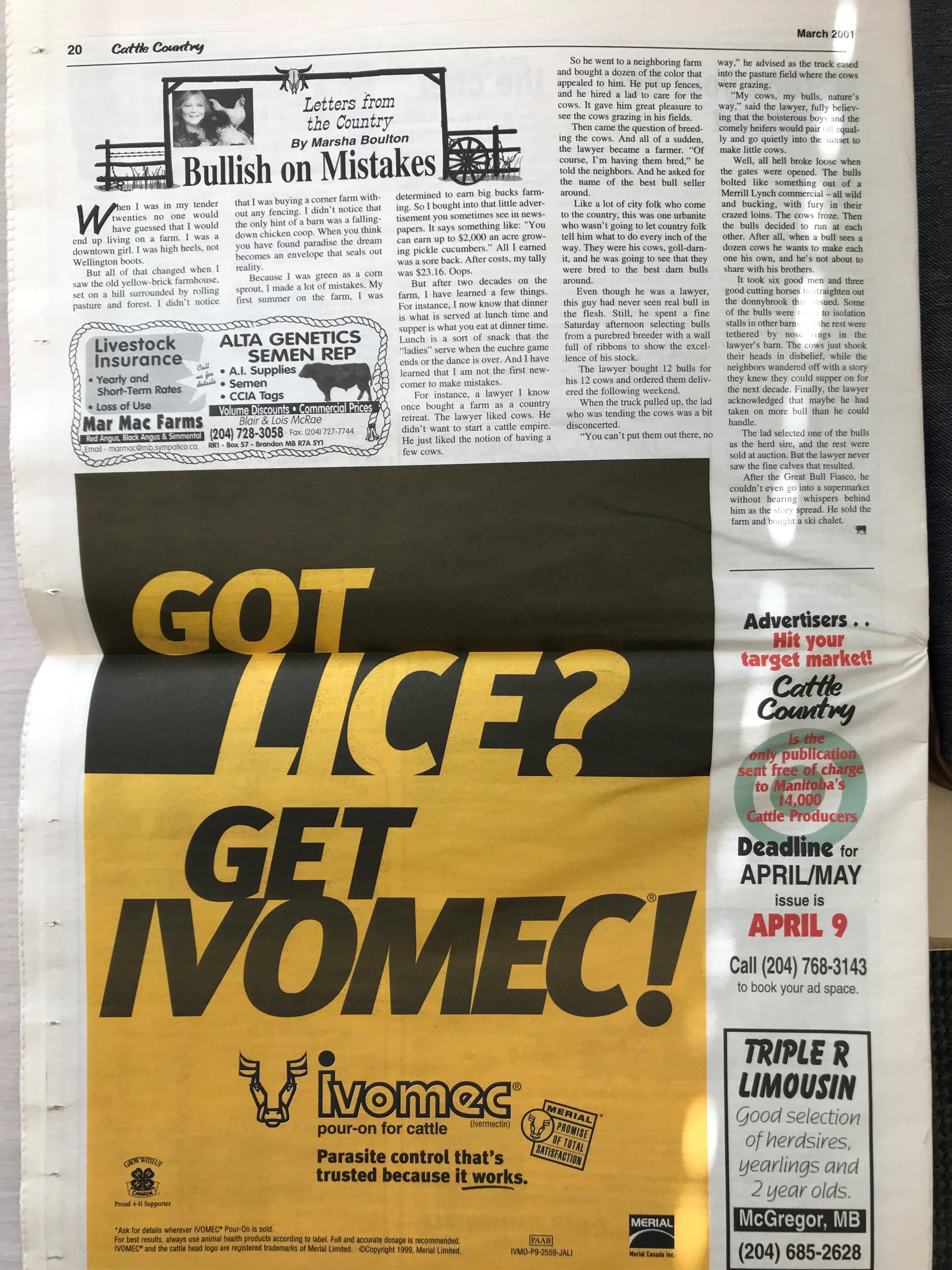 It took six good men and three good cutting horses to straighten out the donnybrook that ensued. Some of the bulls were take to isolation stalls in other barns and the rest were tethered by nose rings in the lawyer’s barn. The cows just shook their heads in disbelief, while the neighbours wandered off with a story the knew they could supper on for the next decade. Finally, the lawyer acknowledged that maybe he had taken on more bull than he could handle.