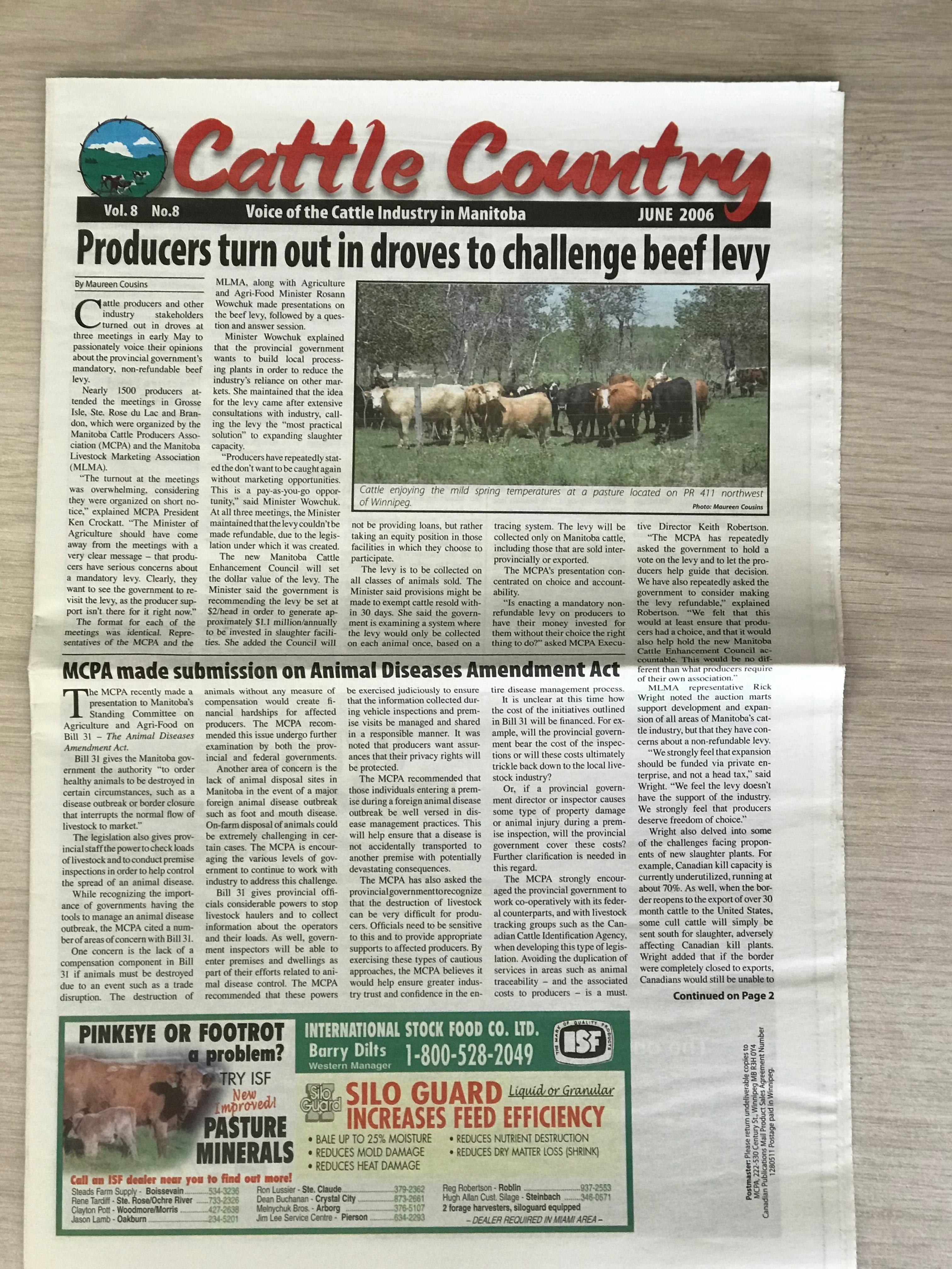 June 2006 - Producers turn out in droves to challenge beef levy