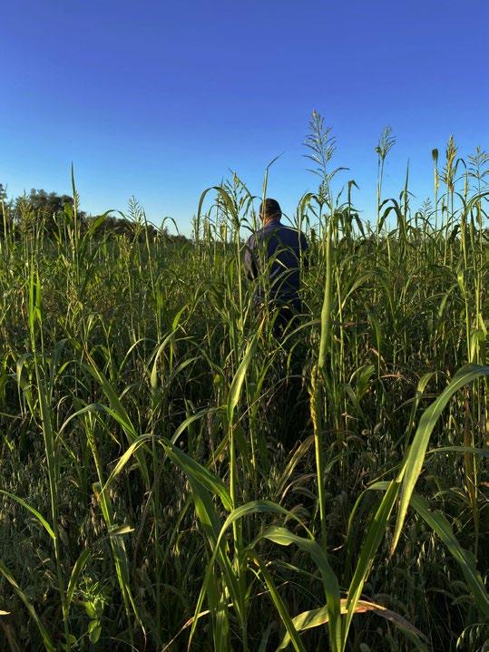 Planning the number of grazing days for each field or paddock across the MBFI land base, and integrating fall grazing of annual forages, ensures we can provide our perennial stands with adequate rest going into dormancy to mitigate over-winter kill losses and improve plant vigor for early spring growth. For the 2022 growing season MBFI trialled the grazing application of teff, a warm-sea son annual grass. Teff can be harvested for multiple cuts of hay; however we were interested in seeing how stock piling teff for early fall grazing would work.