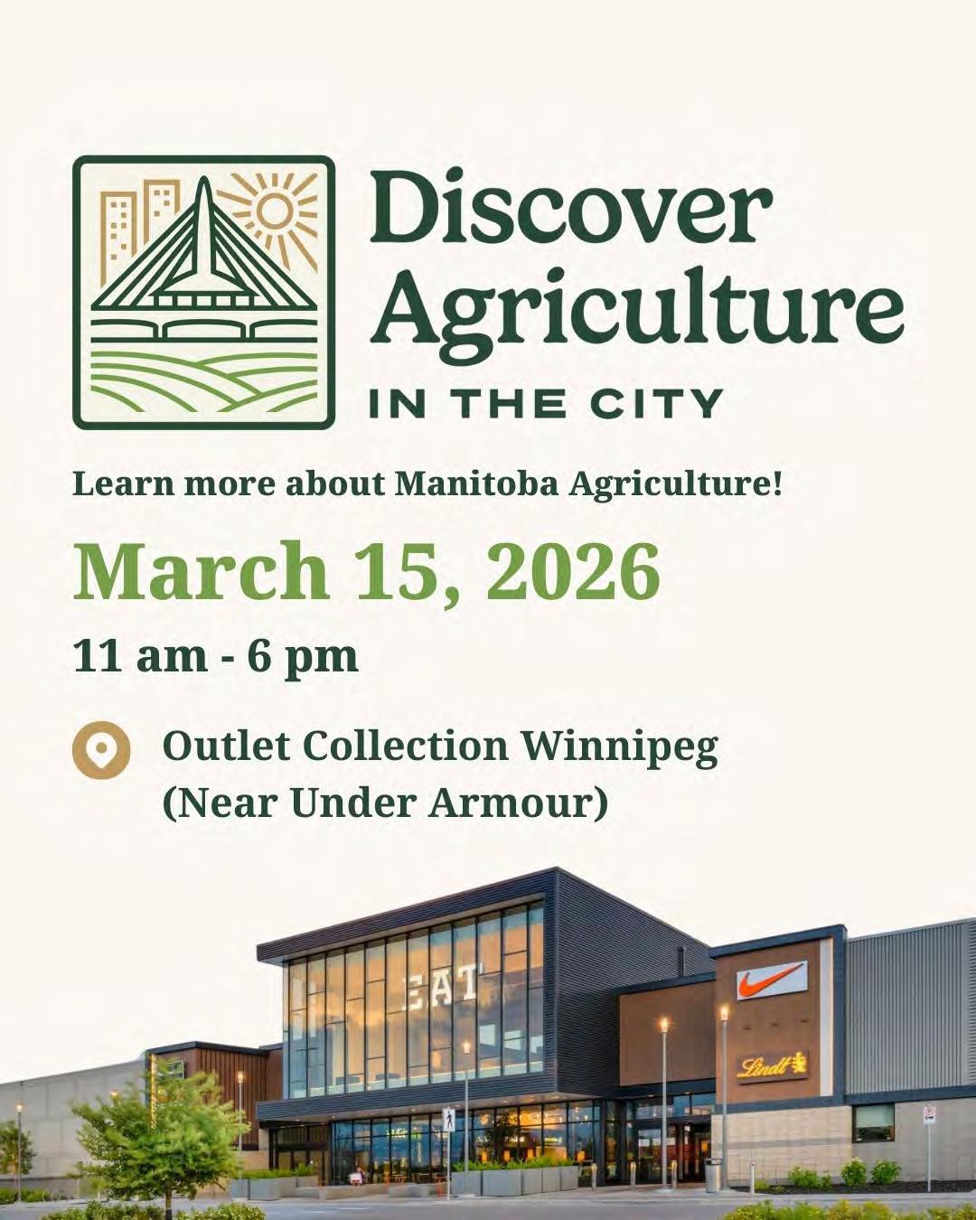 Discover Agriculture in the City is an annual showcase of the best of Manitoba agriculture and the agrifood sector. This year, you can find us in the southwest corner of the mall, near Under Armour.