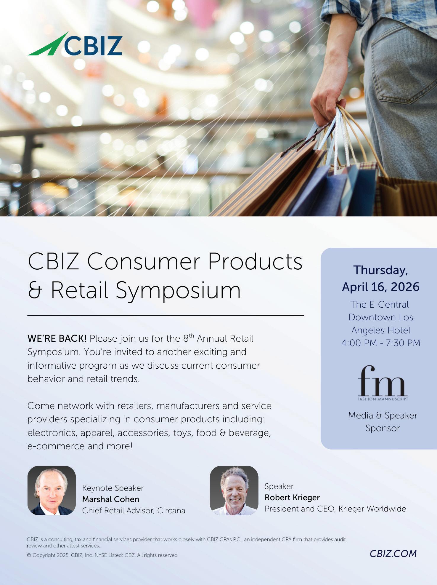 There were many exciting events featured in the magazine this month. A personal favorite was CBIZ’s apparel group’s outstanding cocktail party at the Barbershop Cuts and Cocktails. It was a great opportunity to network with great people.
