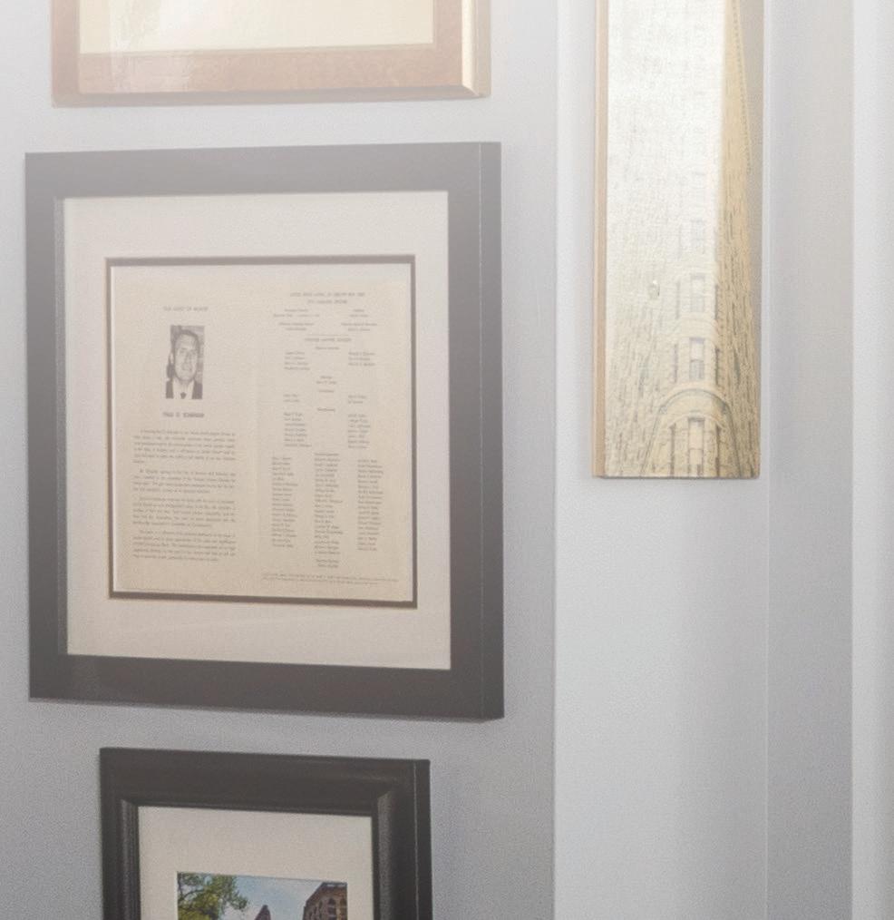real estate portfolios and personal collections. The collegiate Gothic-style Hall Building is exclusively represented by The Wright Group, with the gallery on the street level. The Wrights partnered with premier designer Rachael H. Grochowski of RHG Architecture + Design to create a space that provides an elevated atmosphere for both the fine art gallery and their luxury real estate services.