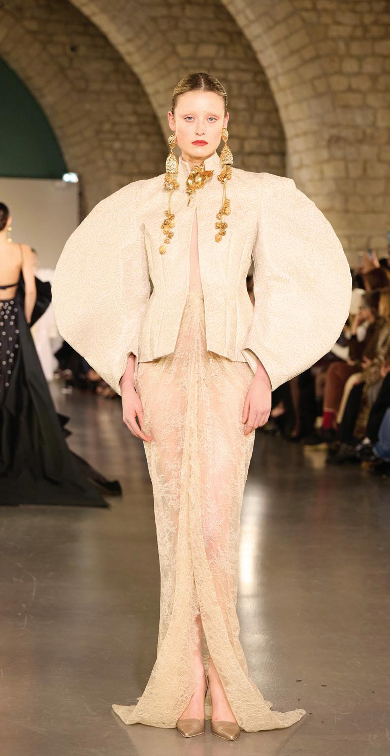 Throughout history, the horse has been a companion in conquest, a witness to conflict and a symbol of power. In this collection, its anatomy and spirit are translated into sculptural volumes, lines that evoke dynamism, and noble materials that reinforce the idea of armor and skin. The garments construct a couture language in which form and meaning advance together, creating a narrative of resilience, elegance and transformation.