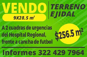 Residential and mixed-use lots for sale, bank financing available, direct financing for 12 months with no interest, attractive discounts for cash payments. Starting at $2,000,000. Info: 322 27 862-99, 322 15 751-08.