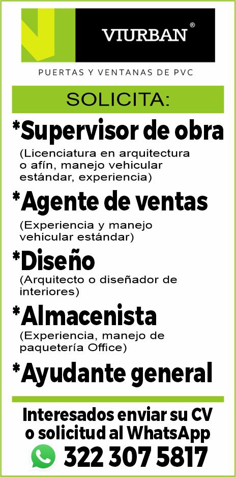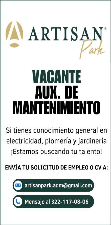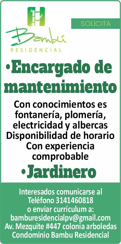 vero y producción, jardinero y supervisor de obra y jardinería. Interesados llamar al tel. 322 29 034-64 o al whatsApp 322 13 997-94.+