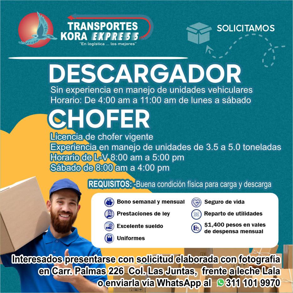 prestaciones de ley, bonos, comedor, uniformes. Informes en City Express Plus. 322 24 364-33.+
