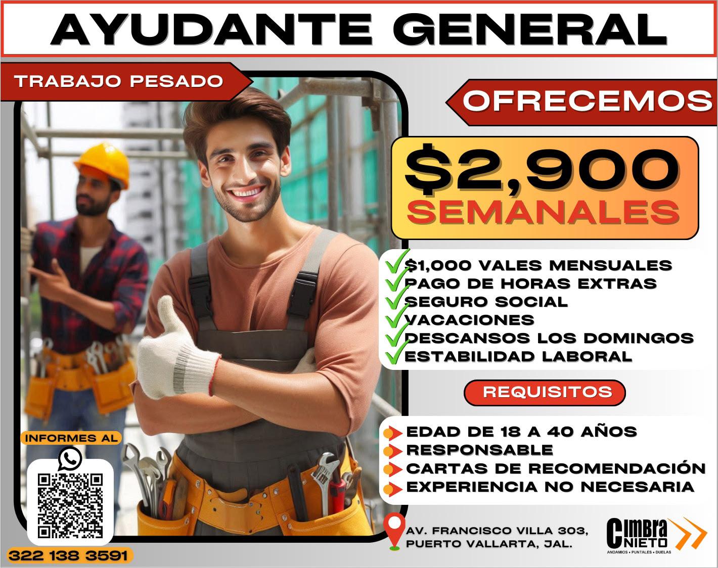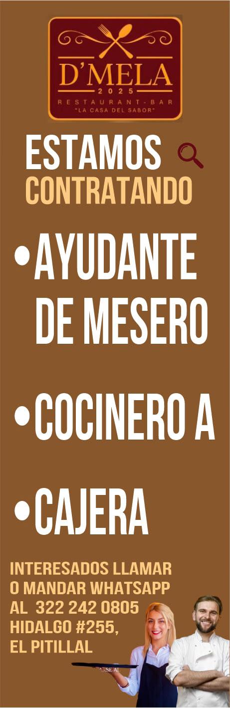 Contratación inmediata. Tel. 322 22 119-33.+