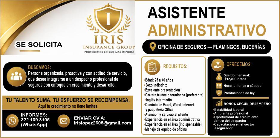 En Bucerías se solicita Asistente Administrativo para oficina de seguros, de 25 a 40 años. Sexo