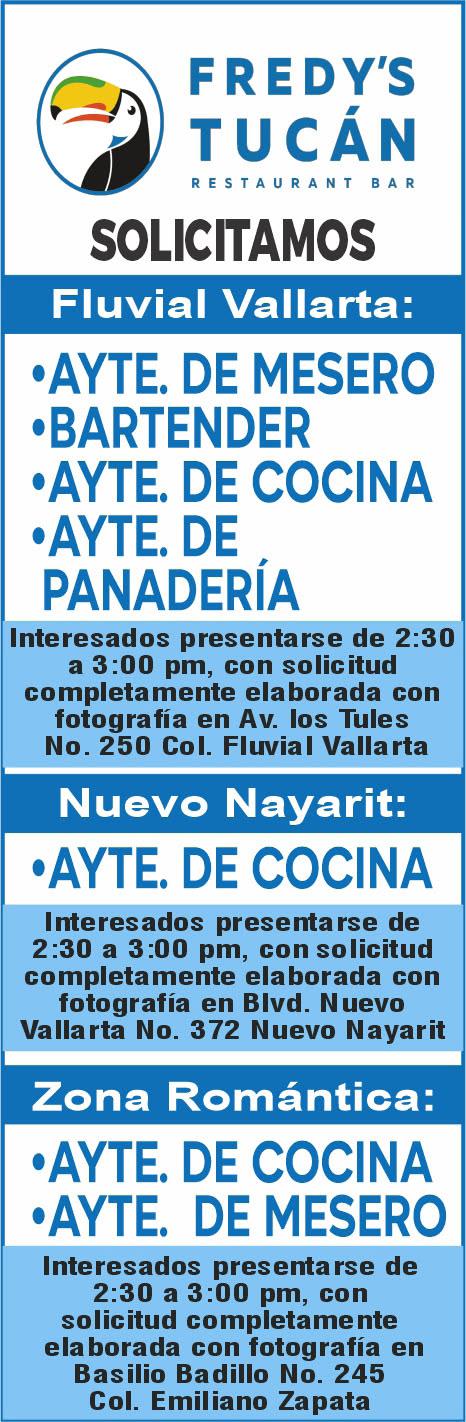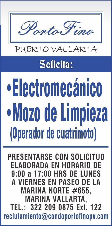 Área de Nuevo Vallarta, solicitamos, aux. de almacén, steward, mesero. Presentar solicitud elaborada. Inf. 322 29 704-03.+