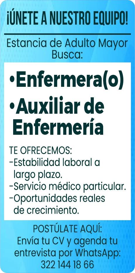 Busco enfermera de 9 a 5 pm, L a V, sábado de 9 2pm. 322 22 705-95.**