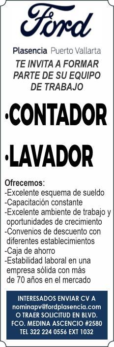 Solicita lavador de autos, experiencia mínima, manejo vehicular estándar. Inf. 322 30 758-17.+