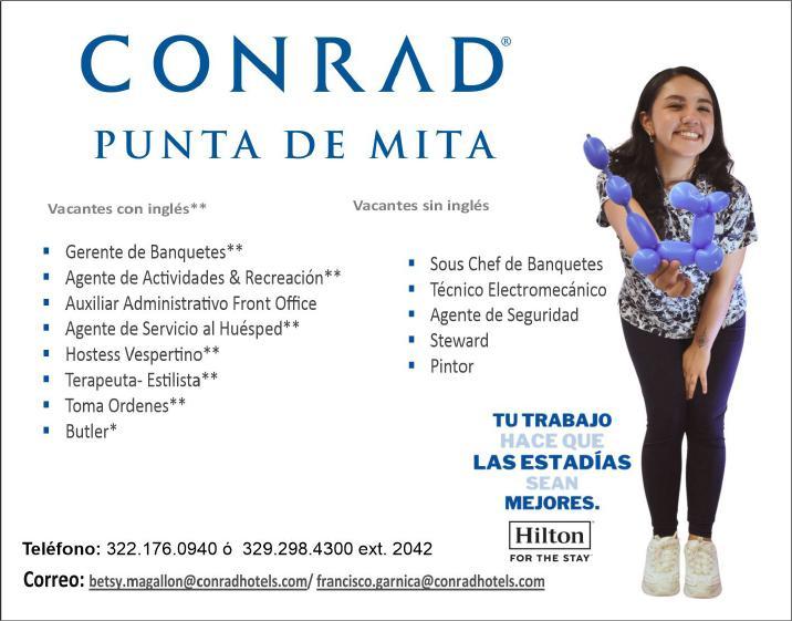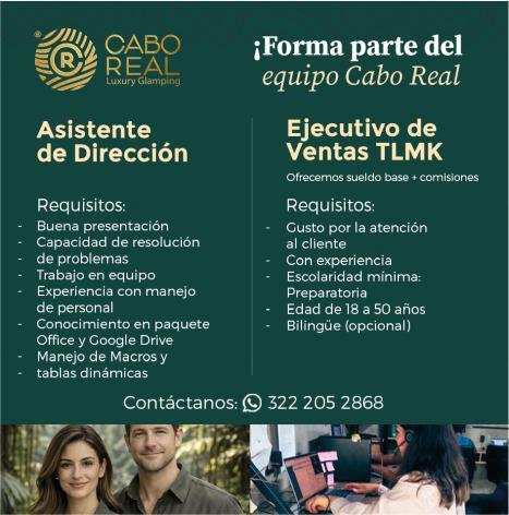 en el puesto. Envía tu CV a cinthia.garcia@delcaboevents. com tel. 322 18 051-74.+