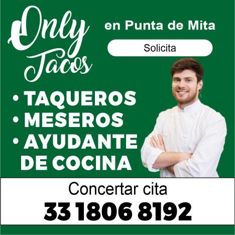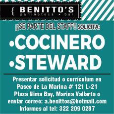 Buscamos cocineros B con experiencia, hostess con buena presentación, mesero con disponibilidad de horario. Inf. 322 22 309-28, 322 22 309-29.+