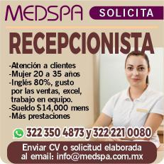 Solicitamos Personal de Recepción: Inglés requerido, Licencia de manejo. Comunícate por WhatsApp a los números. 322 11 894-42, 322 12 59810.+