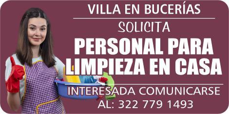 Solicito señora para limpieza de casa, con referencias comprobables, horario 9-5. $500 pesos diarios, incluye alimentos. Llamar. 333 84 100-58.+