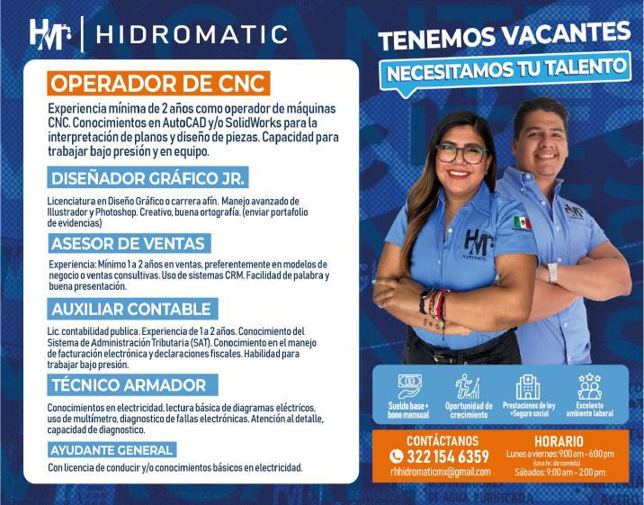 dominio básico de computación, experiencia en atención al cliente, trabajo presencial. Tel. 322 47 034-67.+
