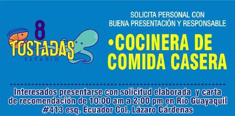 Solicitamos cocinero (a). Interesados contactar al tel. 333 82 888-15.+