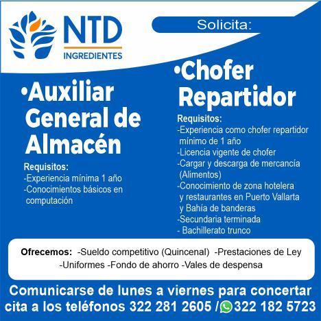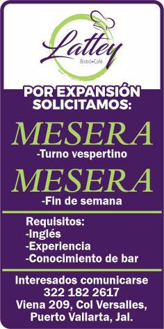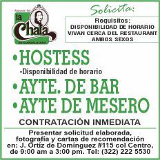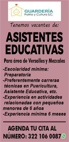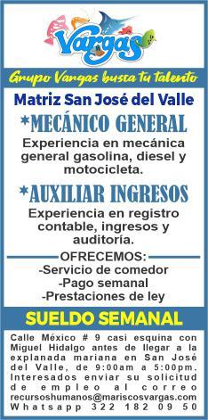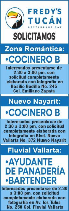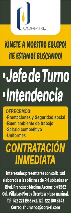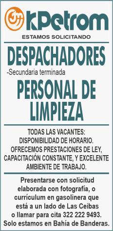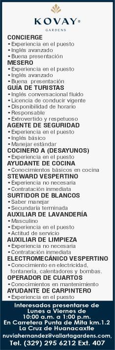 vacantes. Interesados acudir a Av. de Los Tules N. 169, Col. Jardines Vallarta.