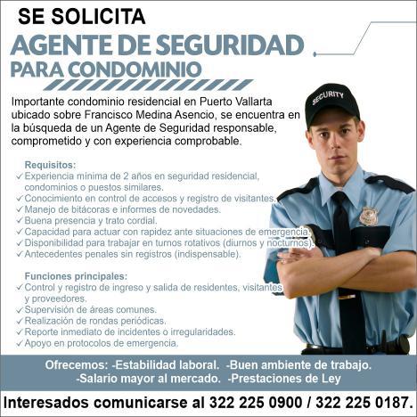 agente de seguridad y auxiliar de limpieza. Pide cita al tel. 322 21 666-26.+