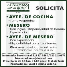 de mesero y cocinero. Contratación inmediata. Informes. 322 21 057-28.+