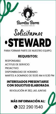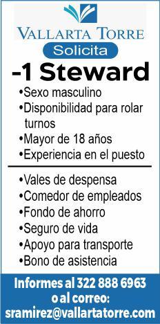 steward, mesero. Presentar solicitud elaborada. Inf. 322 29 704-03.+