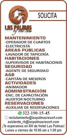 Solicitamos cocinero, steward, barista, jardinero, operador de retroexcavadora, chofer de pipas y chofer de compras. Para todos los puestos ofrecemos apoyo de transporte y alimento. Interesados presentarse en RH del Campo de Golf Flamingos
