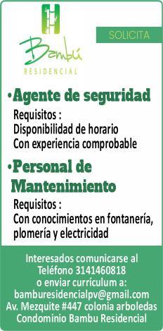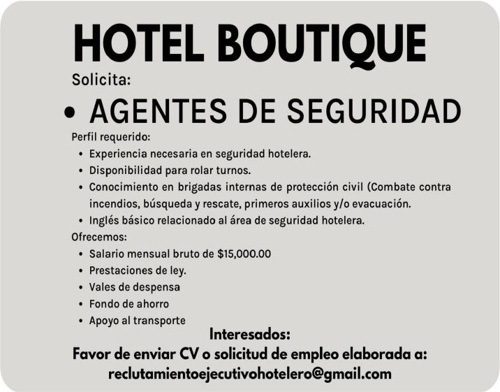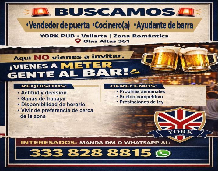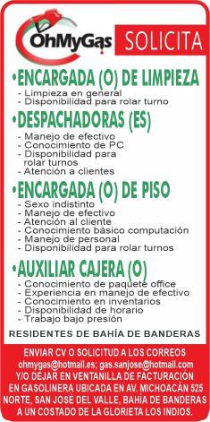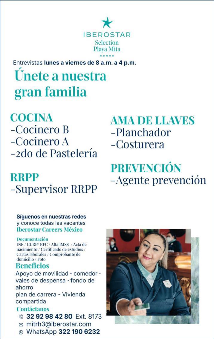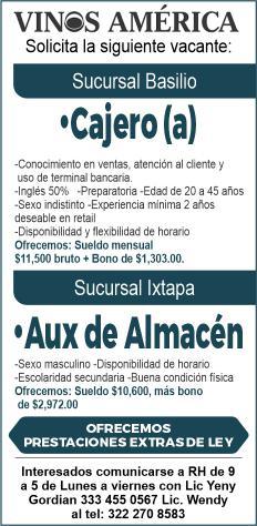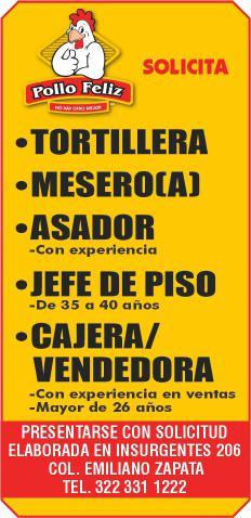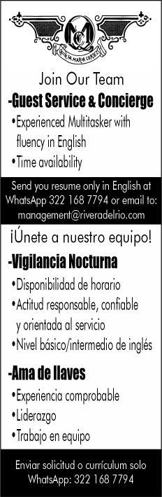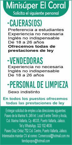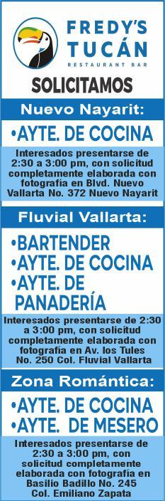 tes áreas administrativas, operativas y de servicios, muchas vacantes. Interesados acudir a Av. de Los Tules N. 169, col. Jardines Vallarta.