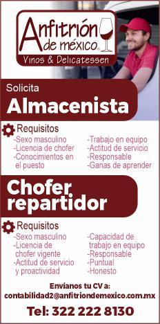 Solicitamos almacenista y chofer repartidor. Interesados pedir informes al tel. 322 22 281-30.+