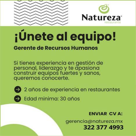 Buscamos cocineros B con experiencia, hostess con buena presentación, steward con disponibilidad de horario. Inf. 322 22 309-28, 322 22 309-29.+