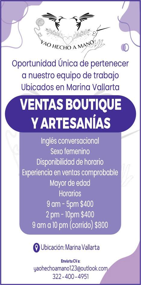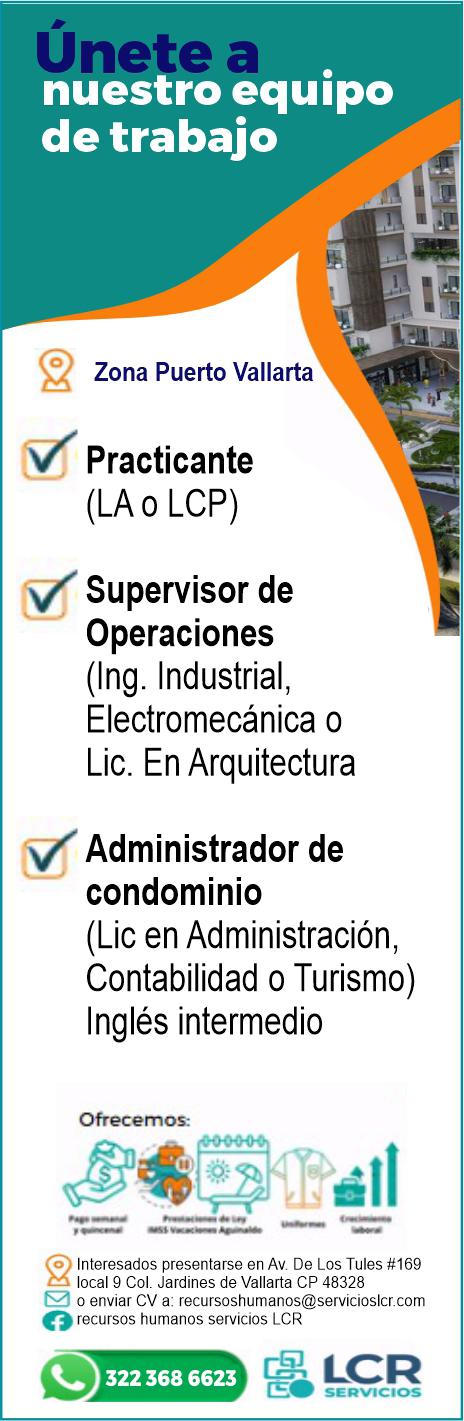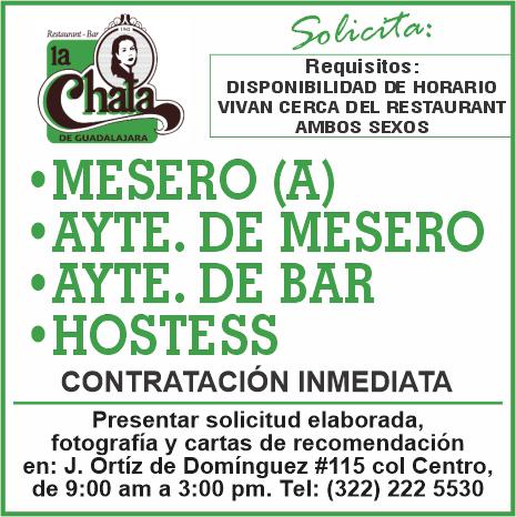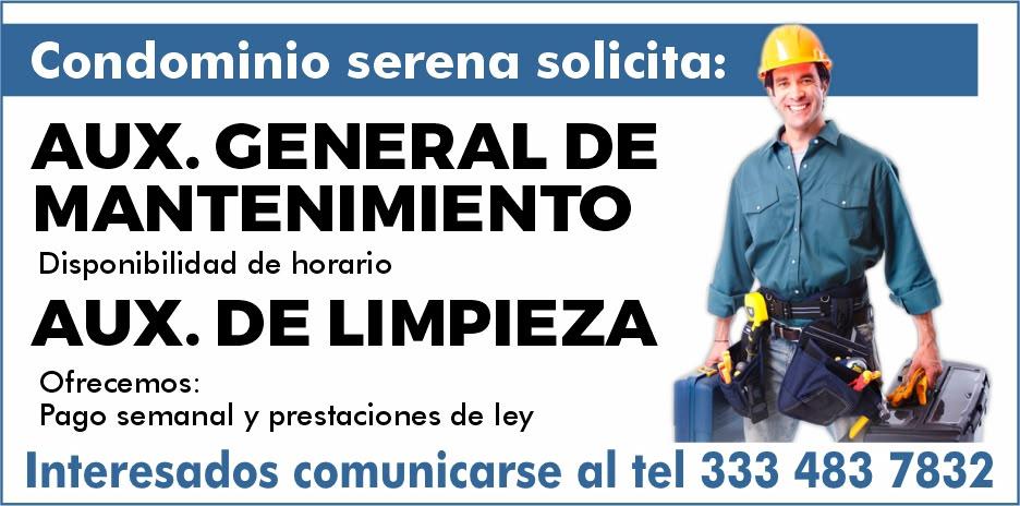 vacantes. Interesados acudir a Av. de Los Tules N. 169, col. Jardines Vallarta.