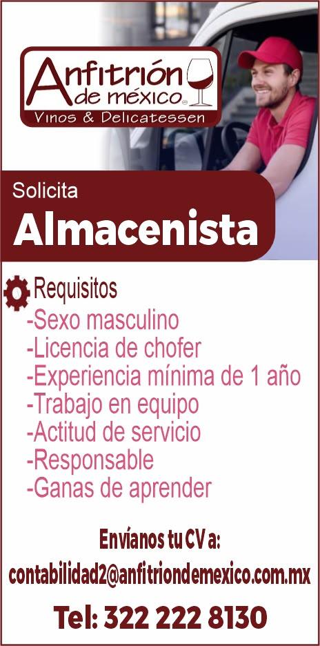 Buscamos almacenista. Interesados llamar al tel. 322 22 281-30.+