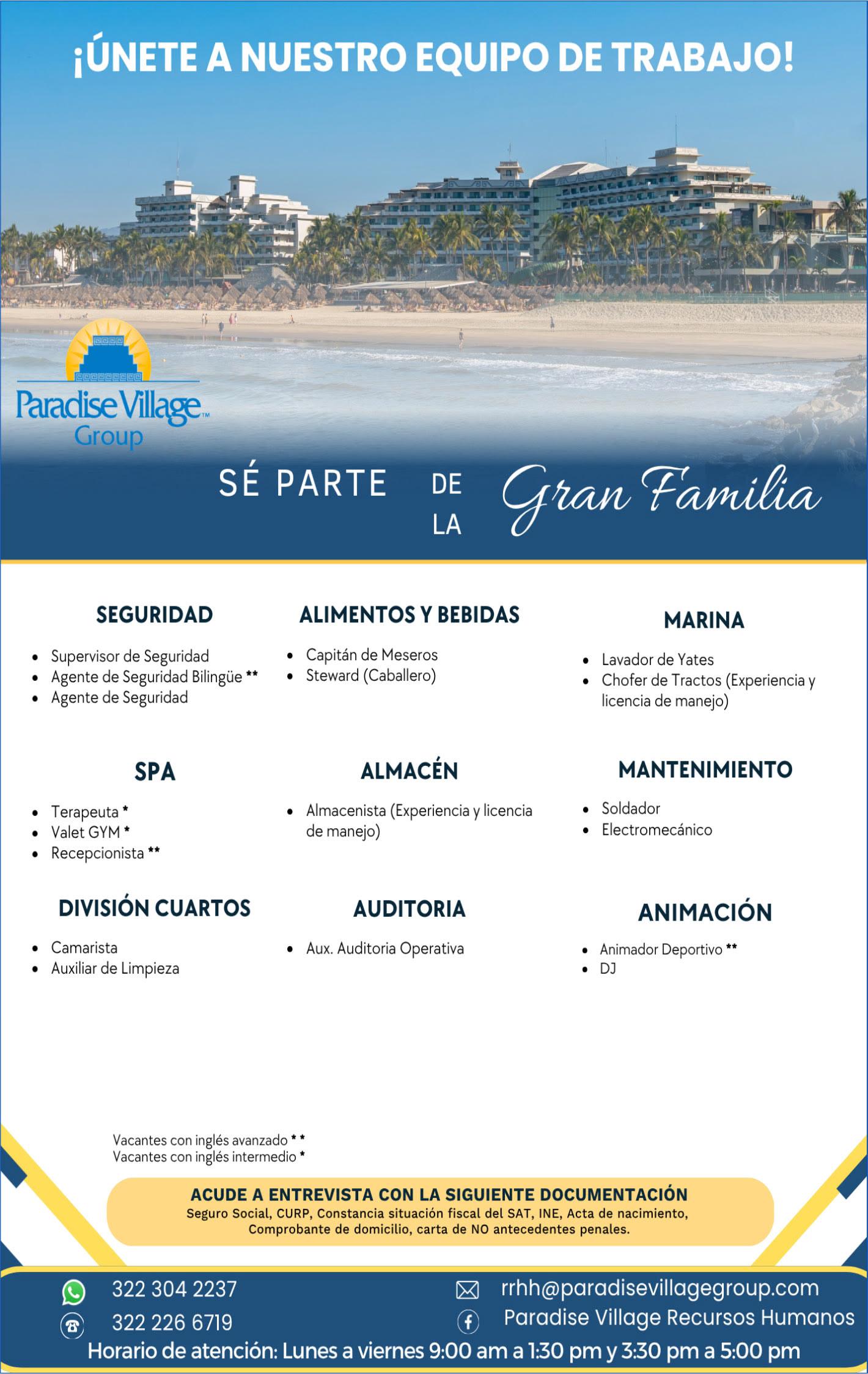 Área Punta de Mita se solicita el siguiente personal: Aux. de Carpintería, Aux. de Limpieza, Aux. de Jardinería, Aux. de Edificación, Agente de Seguridad. Contáctanos para agendar cita al. 329 29 168-84, 322 13 57597.+