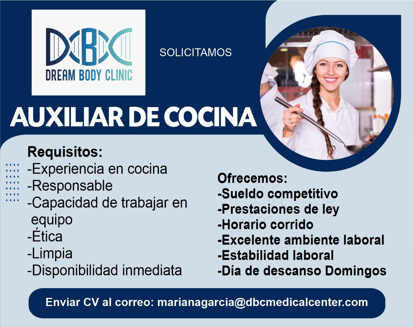 Hospital solicita: Aux de cocina, con experiencia previa. Envía tu CV al correo recursos.humanos@hospitalmedasist.com