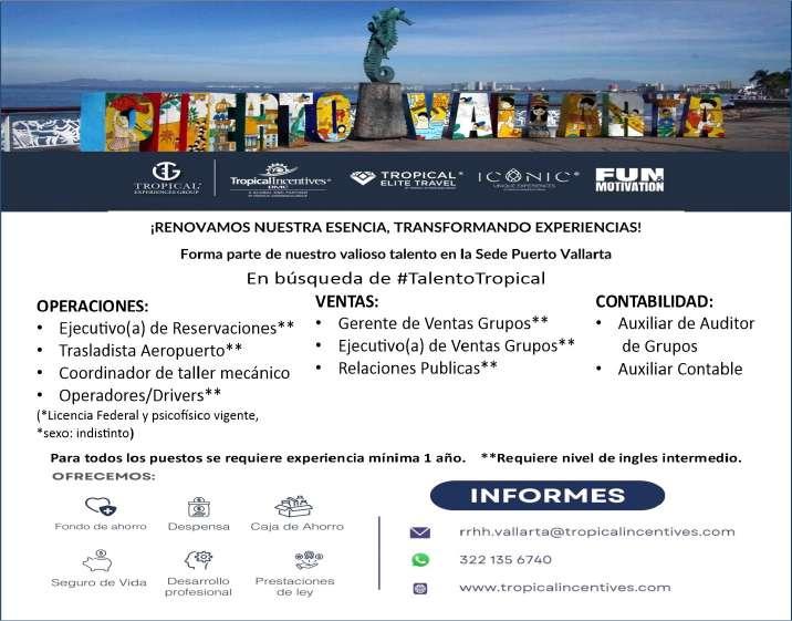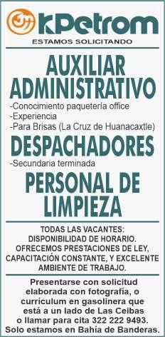 Estamos solicitando en diferentes áreas Administrativas, Operativas y de Servicios, muchas vacantes. Interesados acudir a Av. de Los Tules N.169 Col. Jardines Vallarta.