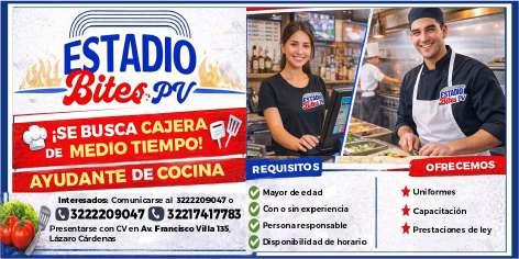 Buscamos cocineros B con experiencia, hostess con buena presentación, mesero con disponibilidad de horario. Inf. 322 22 309-28, 322 22 309-29.+