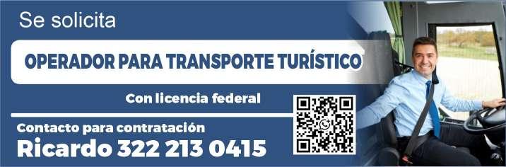 Se solicita operador para transporte turístico con licencia federal. Contacto. 322 21 304-15.+